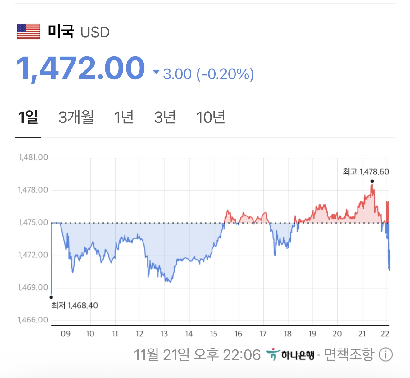 • 11월 21일 기준 환율: 1,472.00원 (-3.00, -0.20%)